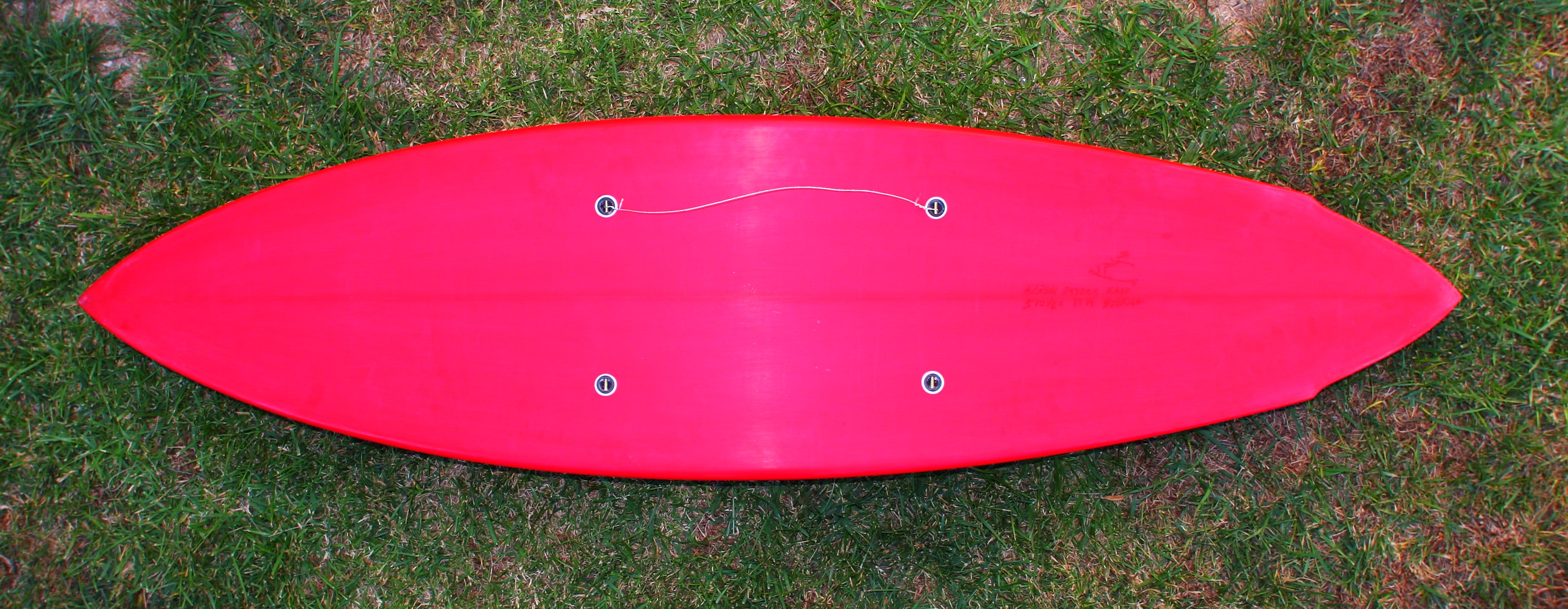 BOTTOM OF SPACE BOARD,SHOWING LEASH PLUGS AND HOW TO ATTACH PICTURE WIRE,BOARDS MAY BE HUNG HORRIZONTAL OR VITICLE