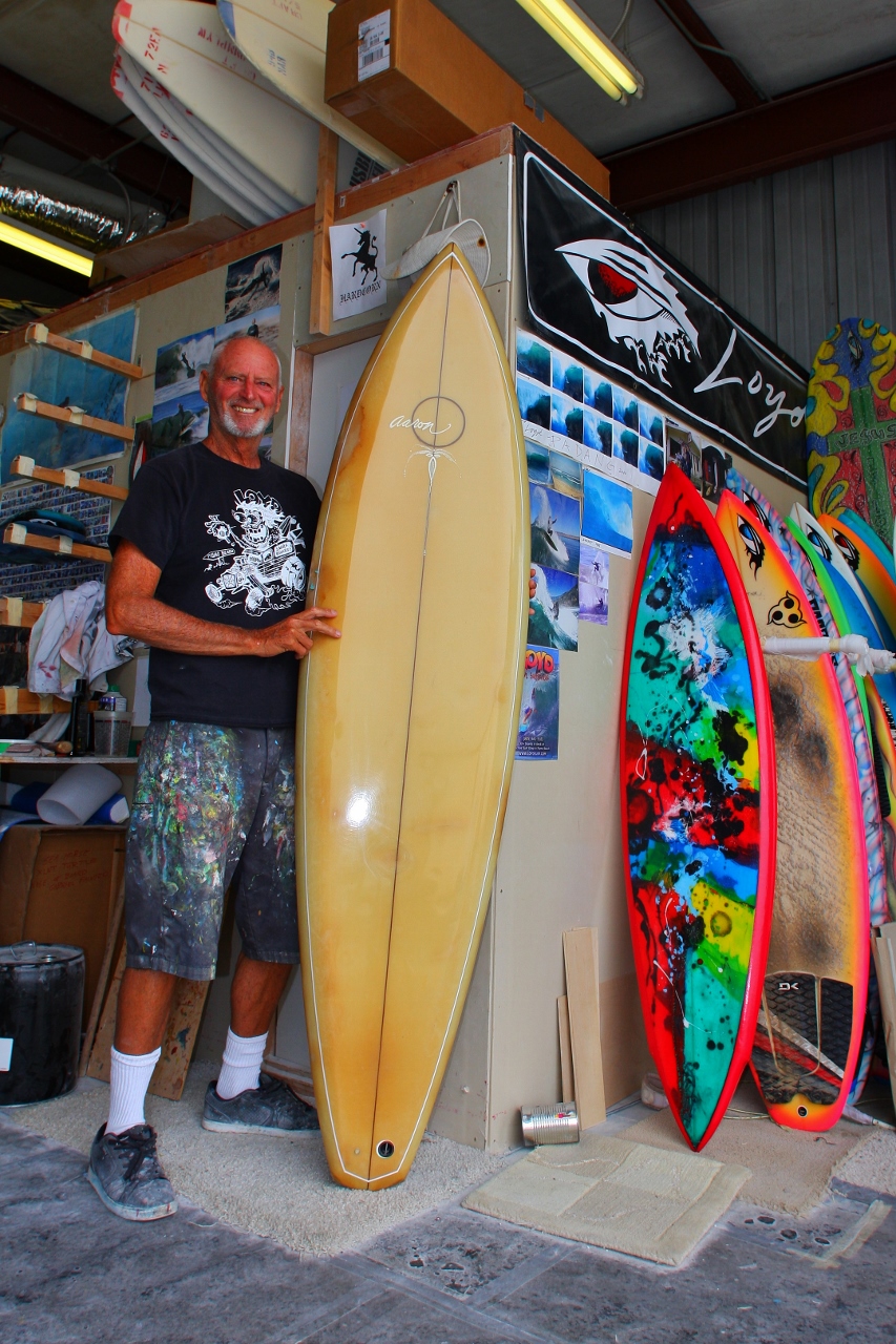 Just looked at your website and was pleasantly surprised to see my board to the front left in your photo of your Devon workshop. I bought it when you were over in Ireland in 1975. Many great memories. A bad gouge out of the side from an unfriendly surfer. Still have the board but don’t get out much these days. Good to see you have had an interesting life. Best Wishes, Milton