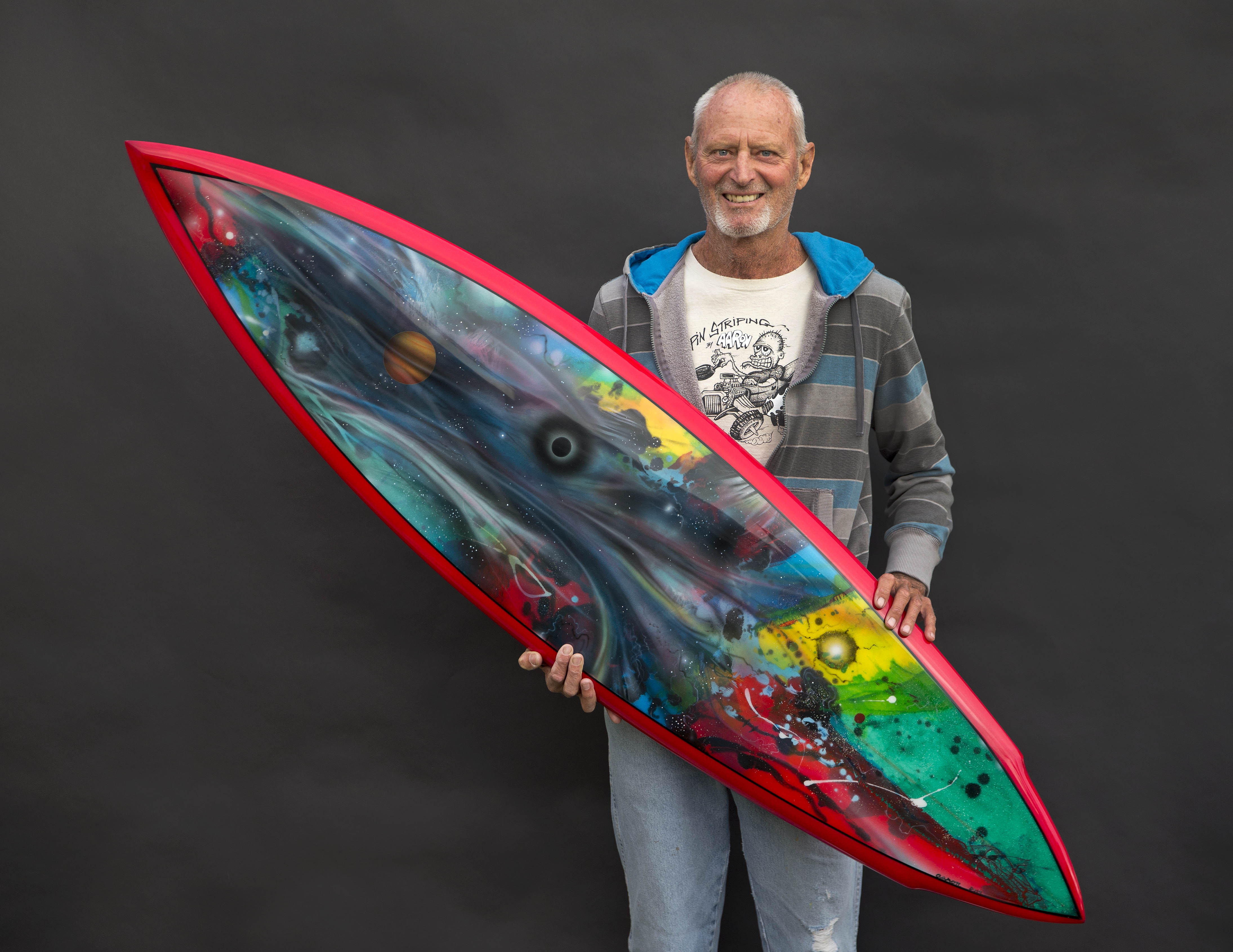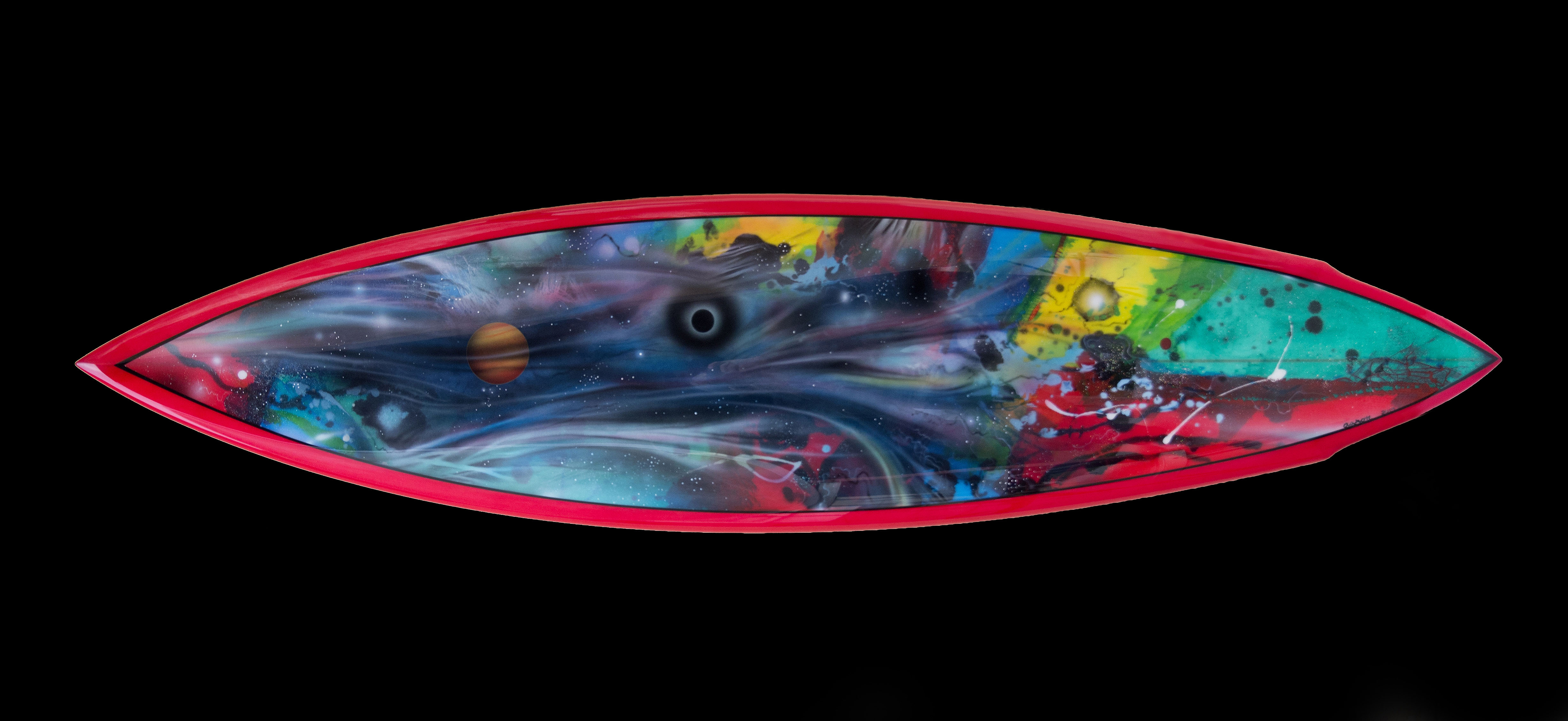 MY NEWEST CREATIONS, AIR BRUSHED SPACE SCENES.SPRAYED UNTO THE DECKS OF RESIN COLORED SURF BOARDS IVE MADE.THESE BOARDS ARE CREATED TO HANG ON YOUR WALL LIKE A PAINTING.THEY HAVE LEASH ATTACHMENT PLUGS PLACED ON THE BOTTOM OF BOARD ,GIVING YOU THE OPTION TO HANG HORRIZONTAL OR VERTICAL…THIS IS A 5′ 11″ BROWN RAIL ROUND TAIL….